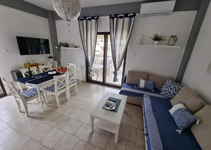 Este apartamento frente a la playa se sitúa a unos 5 minutos a pie del centro de Flogita. La Ekklisia Panagia Korifini está a unos 15 minutos en coche del establecimiento en Flogita.